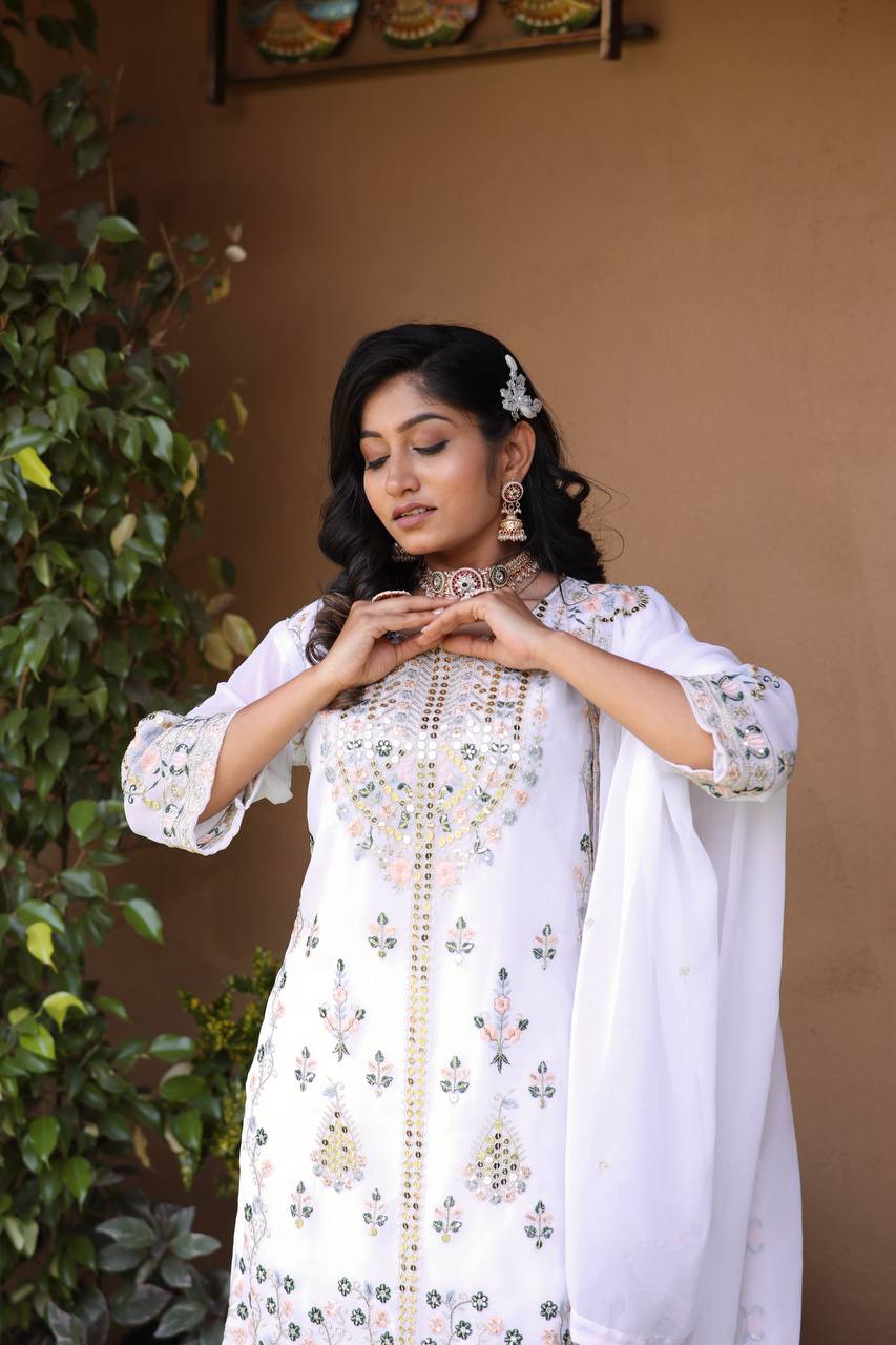 Unveil timeless elegance with our Exclusive Real Modelling Designer Kurti Set, crafted with the highest attention to detail. Made from Pure Faux Georgette Silk, this luxurious outfit showcases intricate multi-needle sequin embroidery work that radiates sophistication and charm. Perfect for festive celebrations, weddings, or special gatherings — this ensemble defines grace and comfort.